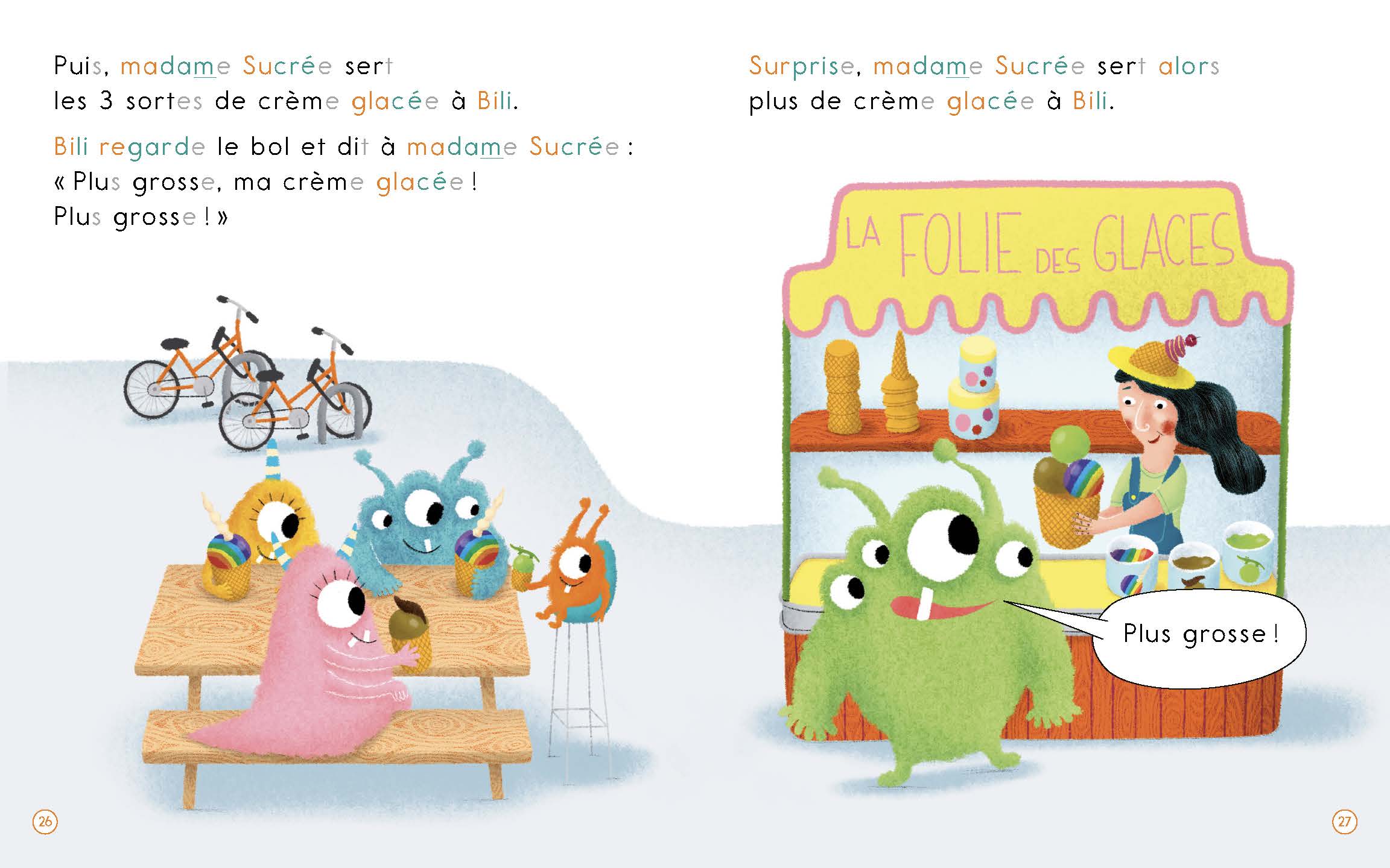 Les Ark dégustent une crème glacée à la Folie des glaces. Bili répète à madame Sucrée :